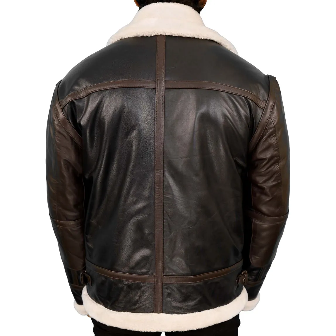 Men’s White B3 Bomber Sheepskin Fur Aviator Leather Jacket