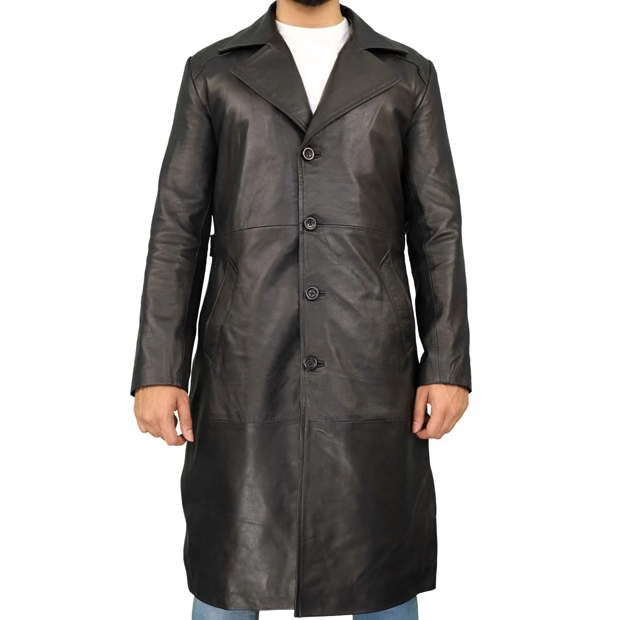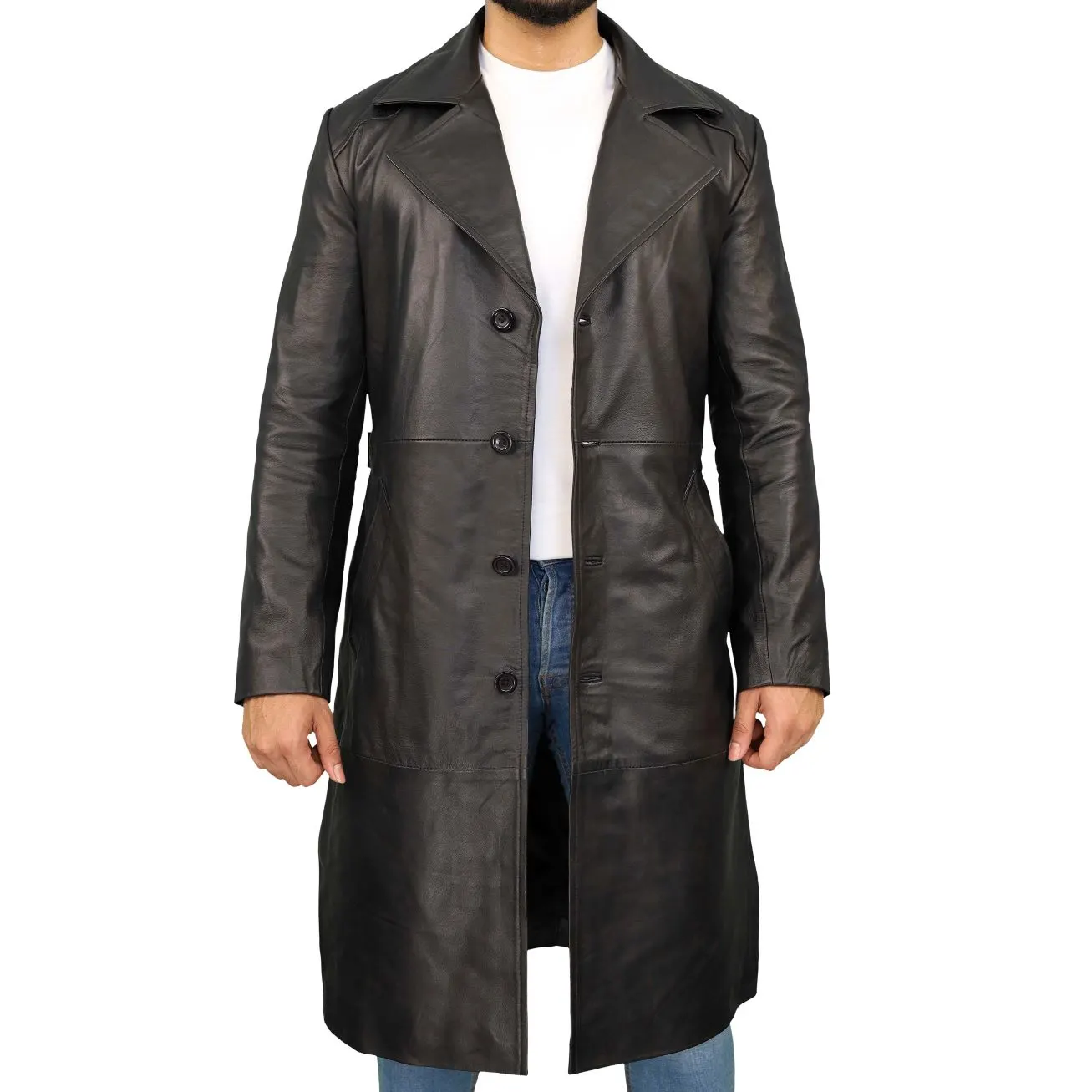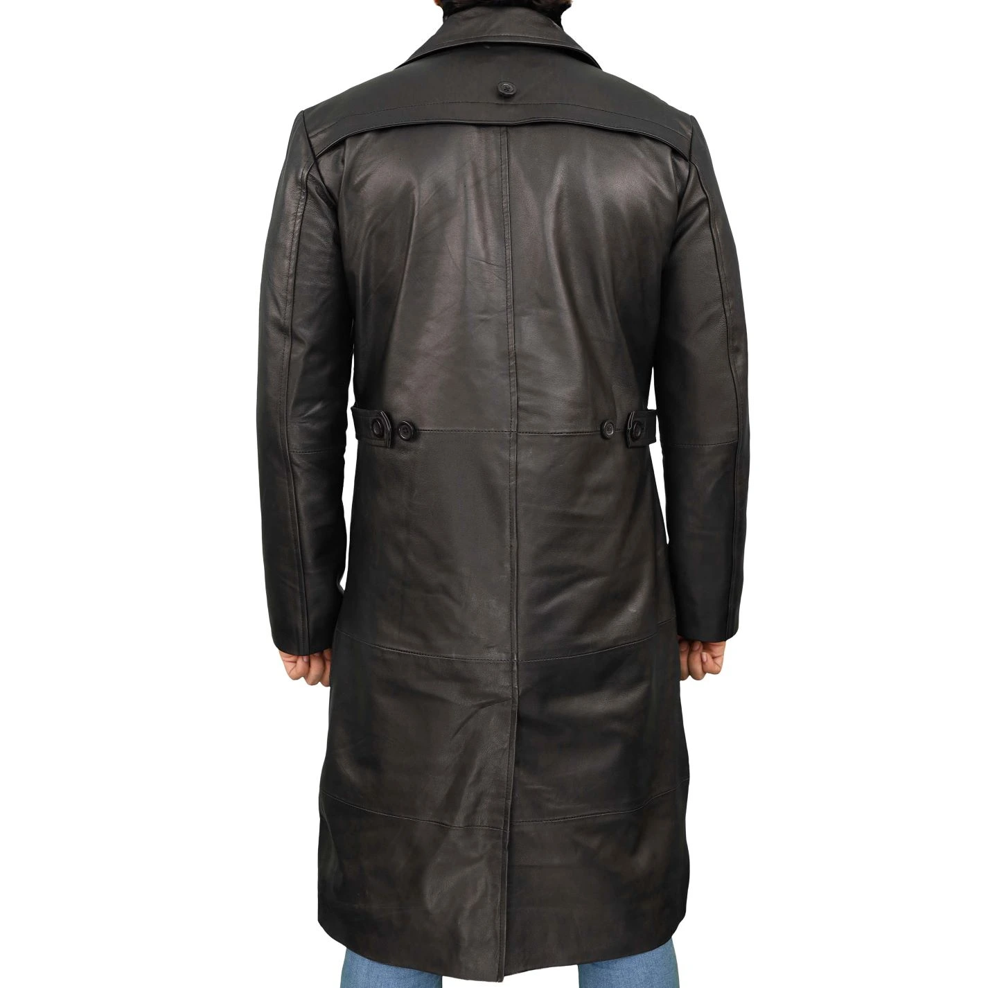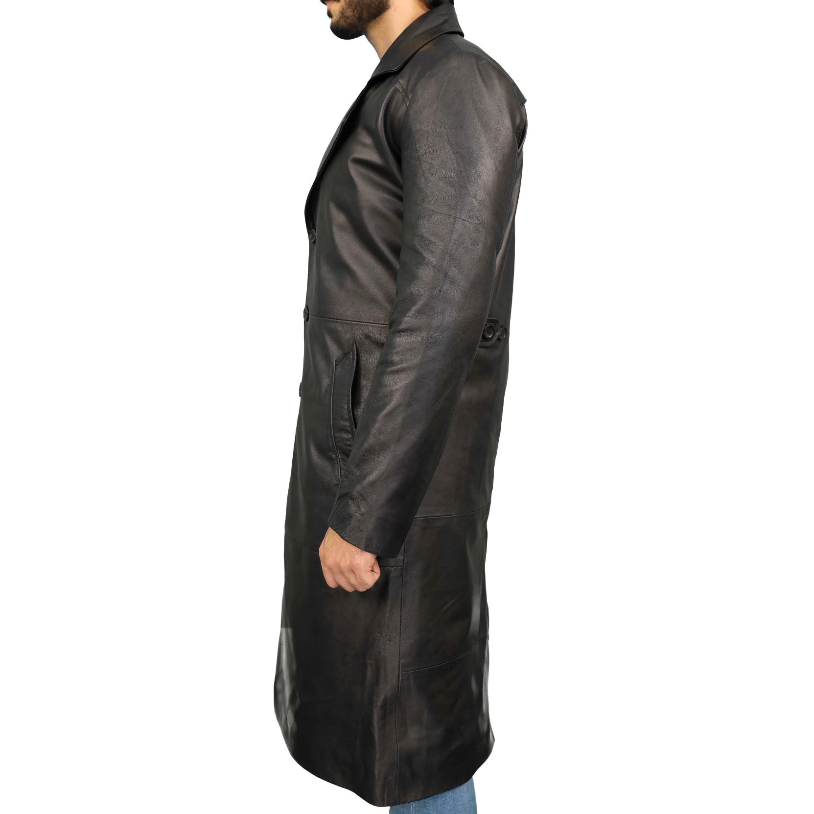 Make a bold statement with our Men’s Black Leather Duster. This sleek and stylish piece combines classic design with modern edge. Perfect for any occasion.