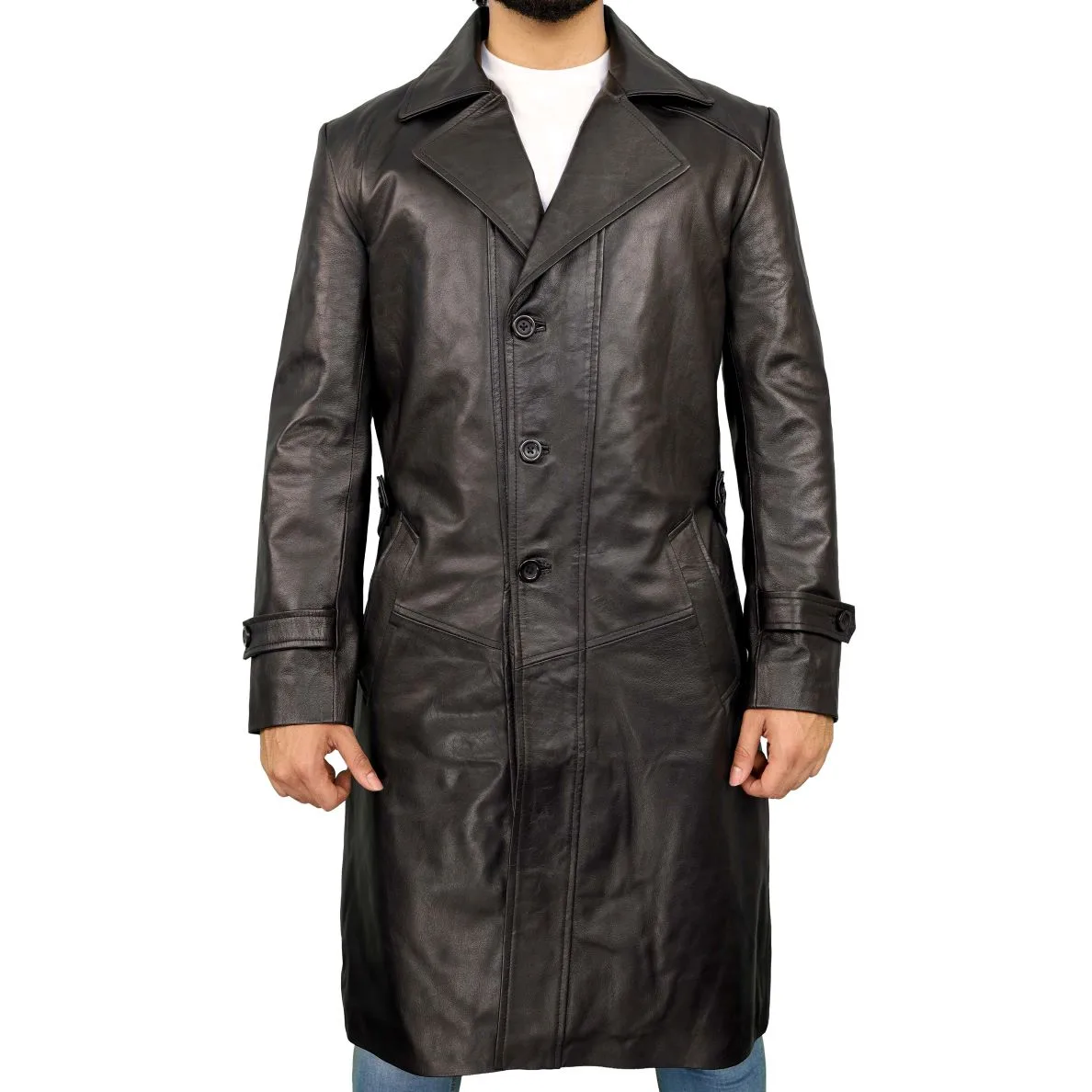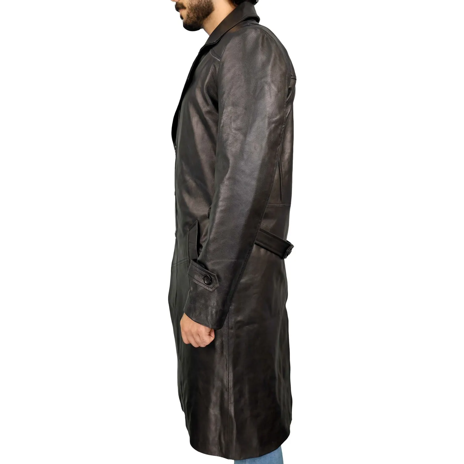 Men’s Genuine Goatskin Black Leather Trench Coat
